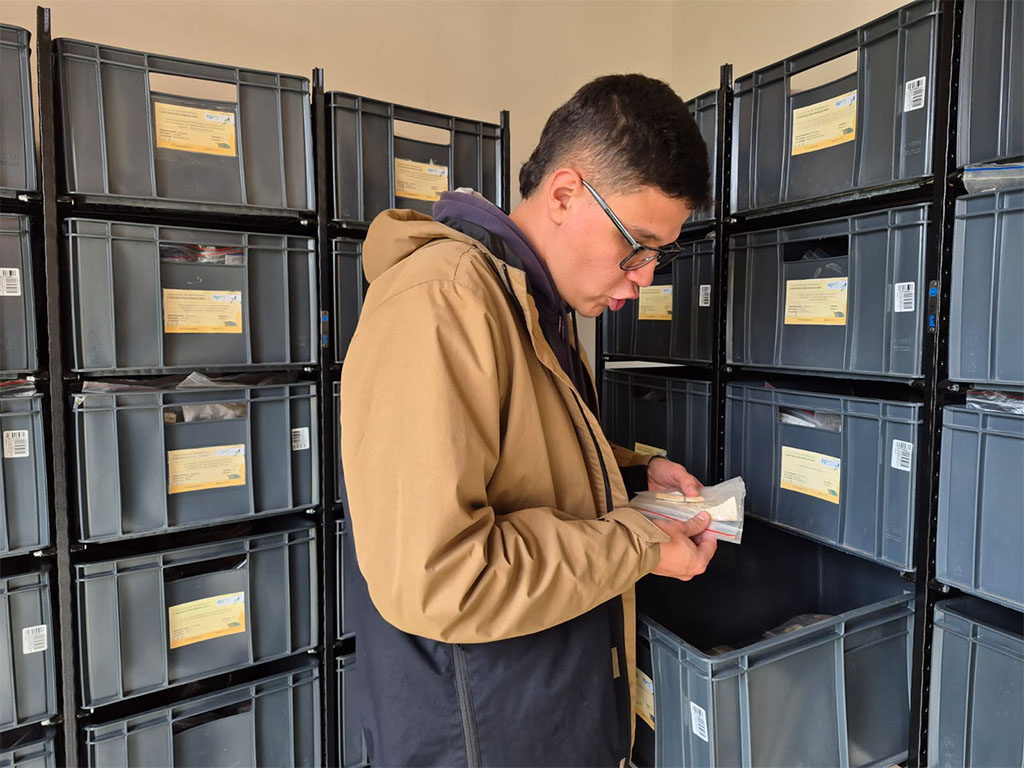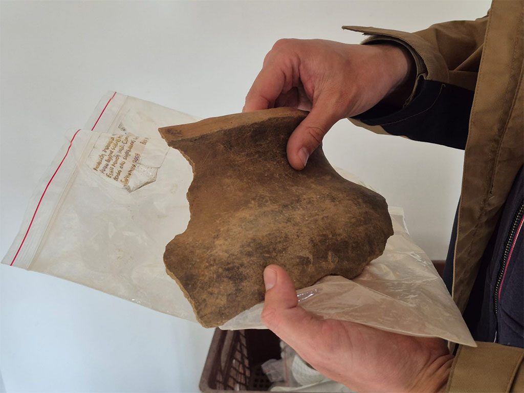 - Felipe Arias, arqueólogo de la Corporación Parque Arví, enseña algunas piezas de la colección de referencia arqueológica del parque.