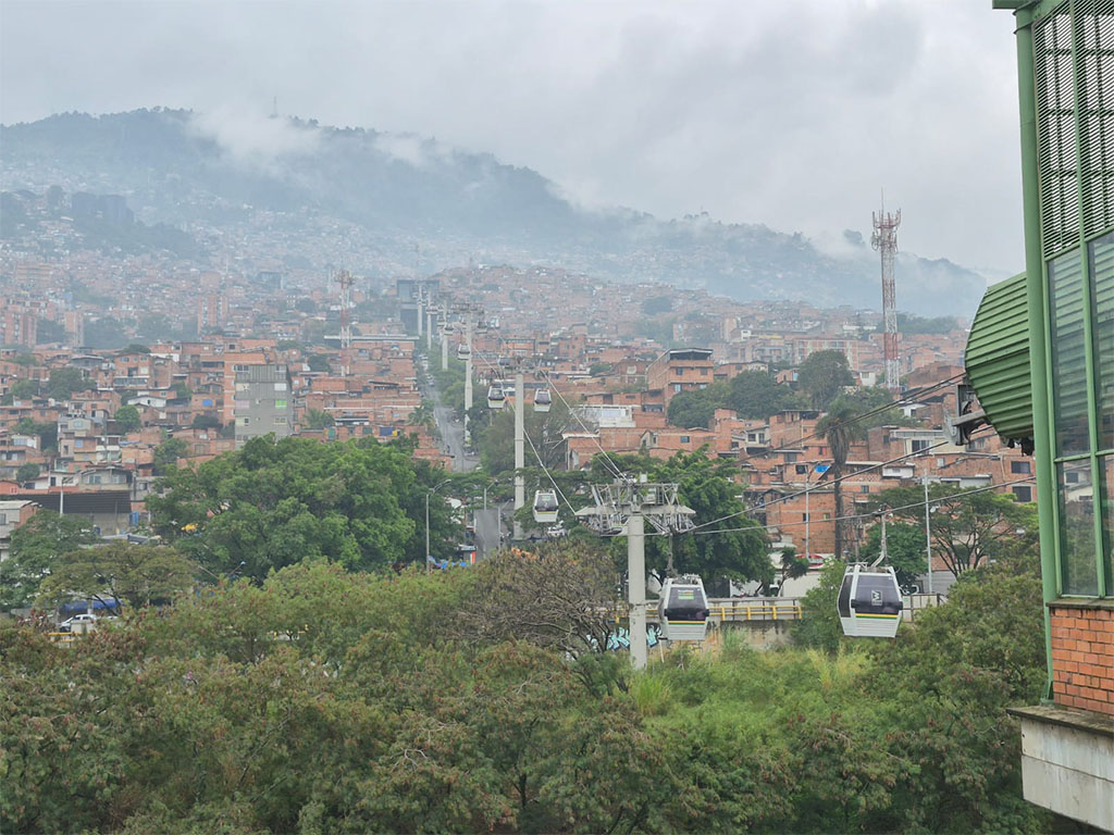 Panorámica desde una de las telecabinas del Metrocable Arví o línea L del sistema Metro.