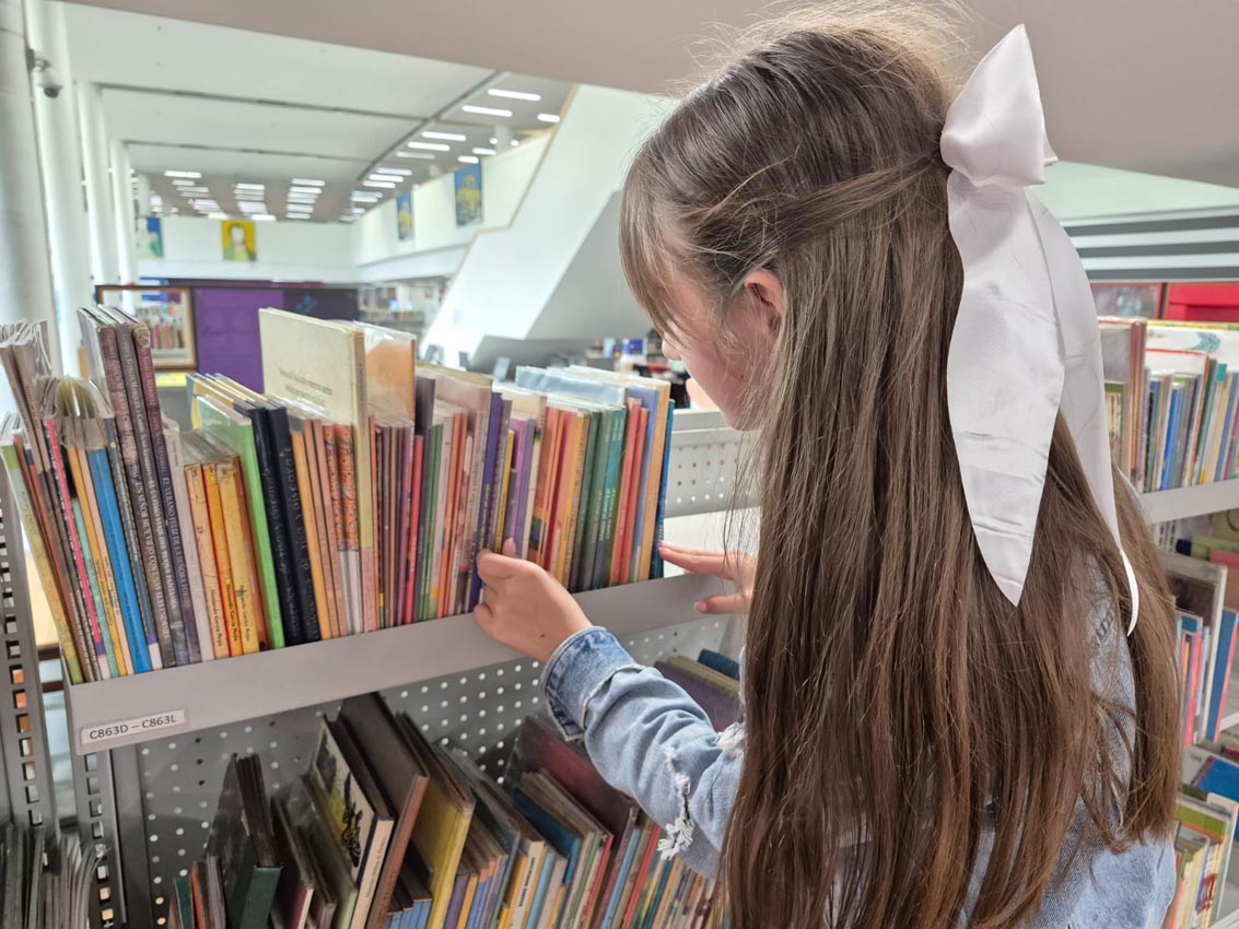 María Fernanda en la Sala infantil Pedrito Botero de la Biblioteca Pública Piloto.