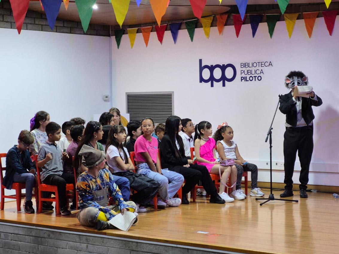 Biblioteca Pública Piloto y niños participantes en el Concurso de Cuento Infantil Pedrito Botero.